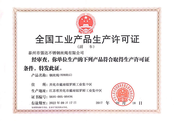 泰州市強達(dá)不銹鋼絲繩有限公司位于江蘇興化市戴南經(jīng)濟開發(fā)區(qū),公司致力于不銹鋼絲繩產(chǎn)品生產(chǎn),立志成為“國內(nèi)技術(shù)標(biāo)桿型吊索具生產(chǎn)企業(yè)”。以此戰(zhàn)略思想指導(dǎo),公司堅決貫徹“質(zhì)量贏市場,管理增效益,誠信贏天下”的質(zhì)量方針。以完善的服務(wù)在國內(nèi)不銹鋼絲繩市場樹立良好的品牌形象。公司榮獲“江蘇省質(zhì)量信得過企業(yè)。 靈活的管理機制,經(jīng)驗豐富的